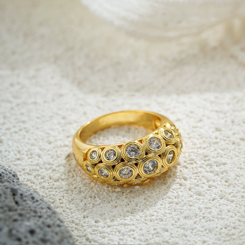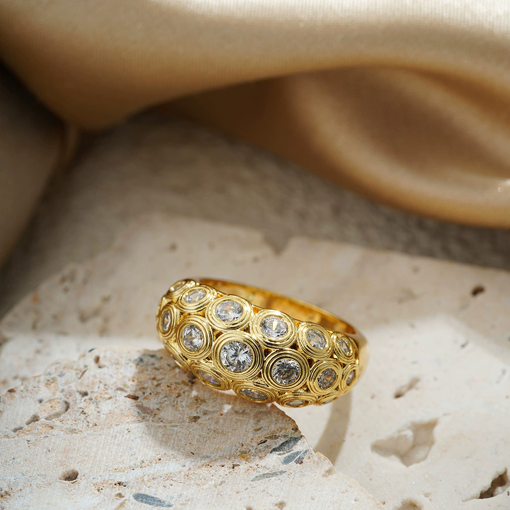 Glistening 18K Gold & Cubic Zirconia Statement Ring